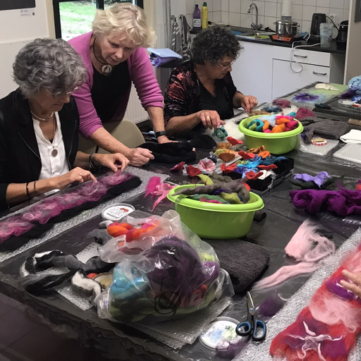 Als je een eigen groep hebt (min. 5 personen) geef ik op aanvraag workshops vilten in ons eigen atelier in Oldebroek.